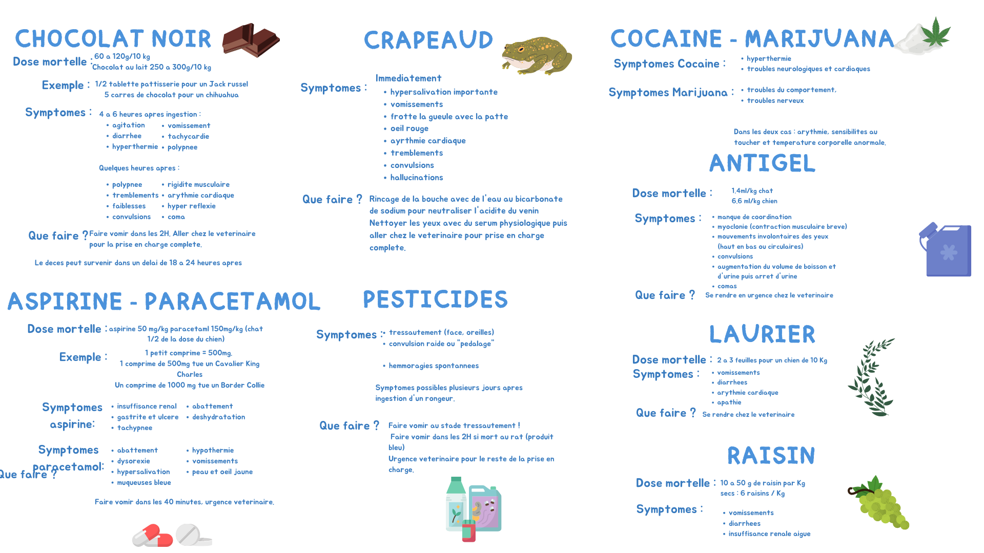 Le partage de notre environnement, leur nature curieuse les exposent à des produits chimiques, des médicaments, des aliments et bien d'autres éléments à risque.