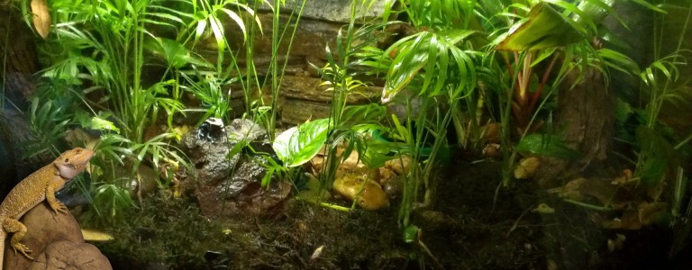 - Terrarium de taille adaptée : pas trop grande pour un pogona en croissance (éviter les paniques), 80x40x50 environ pour un adulte et dès 100x40x50 pour plusieurs pogonas ( 2 femelles un mâle par exemple).