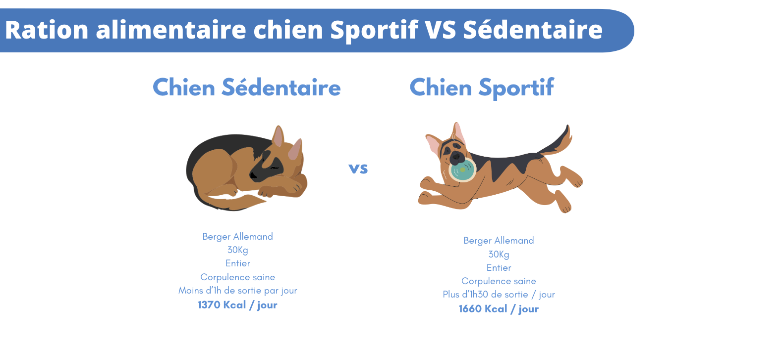 Un chien qui sort en promenade tous les jours, court et joue avec ses congénères ou trottine à vos côtés durant votre footing hebdomadaire n'est pas un chien sportif, ce type d'activité est normal et n'a pas besoin d'une alimentation hypercalorique.