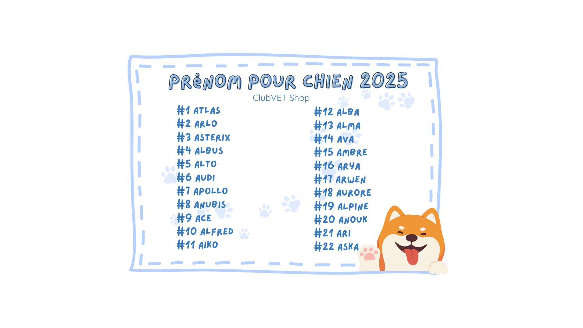 Si vous avez une chienne née en 2025, voici quelques suggestions de prénoms :