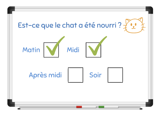 Si vous êtes plusieurs à nourrir votre chat, vous pouvez installer un petit tableau à feutre effaçable et cocher le repas déjà donné.