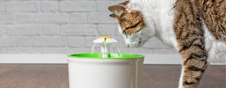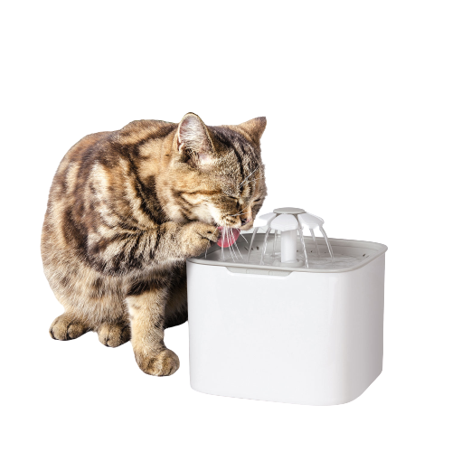 - proposer une fontaine à eau : le mouvement de l'eau attire les chats, elle permet aussi de filtrer l'eau et de la garder fraîche et propre (nettoyez la fontaine en respectant la notice d'utilisation),